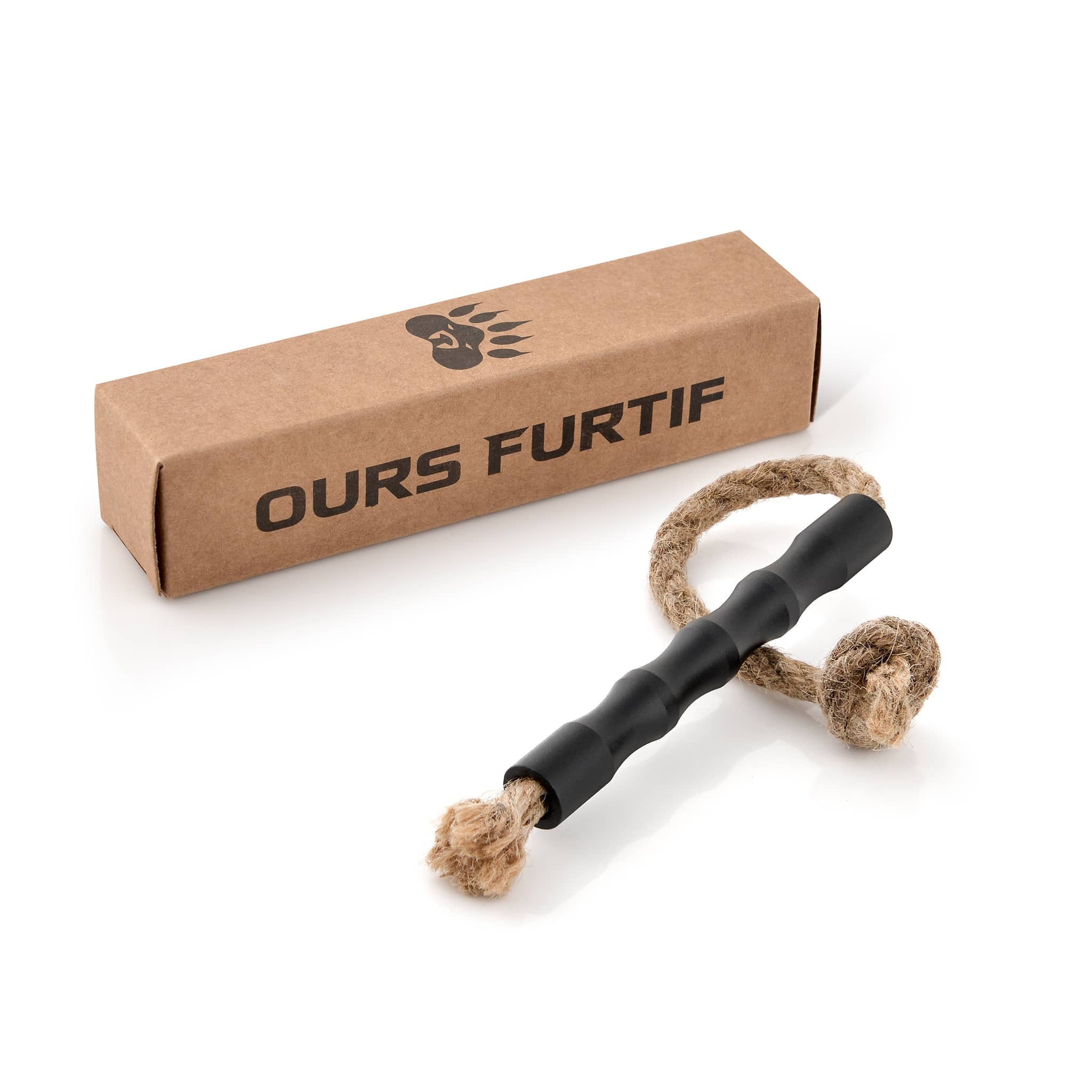 A l’aide de votre firesteel la corde de jute s’enflamme rapidement et à haute température. Vos feux seront plus faciles à démarrer, même dans des conditions extrêmes (pluie, humidité, vents, neige, température glaciale). L’efficacité de cet amadou est due à la cire qui imbibe la corde, le rendant extrêmement efficace, pratique et résistant a l’eau. Le tube permet une bonne prise en main, et de placer facilement la corde sous le bois à allumer. Une fois votre feu démarré vous pouvez éteindre la corde grâce au tube et également vous servir de celui-ci comme souffleur.