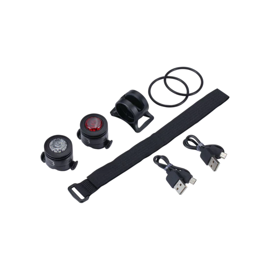 Pack regroupant les éclairages Spy avant et arrière. Eclairages multifonction pour une utilisation urbaine. Parfaits aussi pour une utilisation lors d’activités en extérieur demandant une bonne visibilité, tels que la course à pied ou promener son chien.
