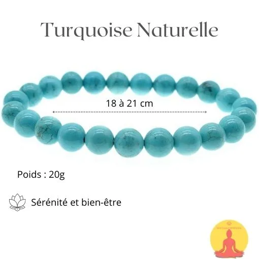 Bracelet en perles, Turquoise naturelle. 4 tailles : 18,19, 20 et 21cm. Perles de 8mm de diamètre.