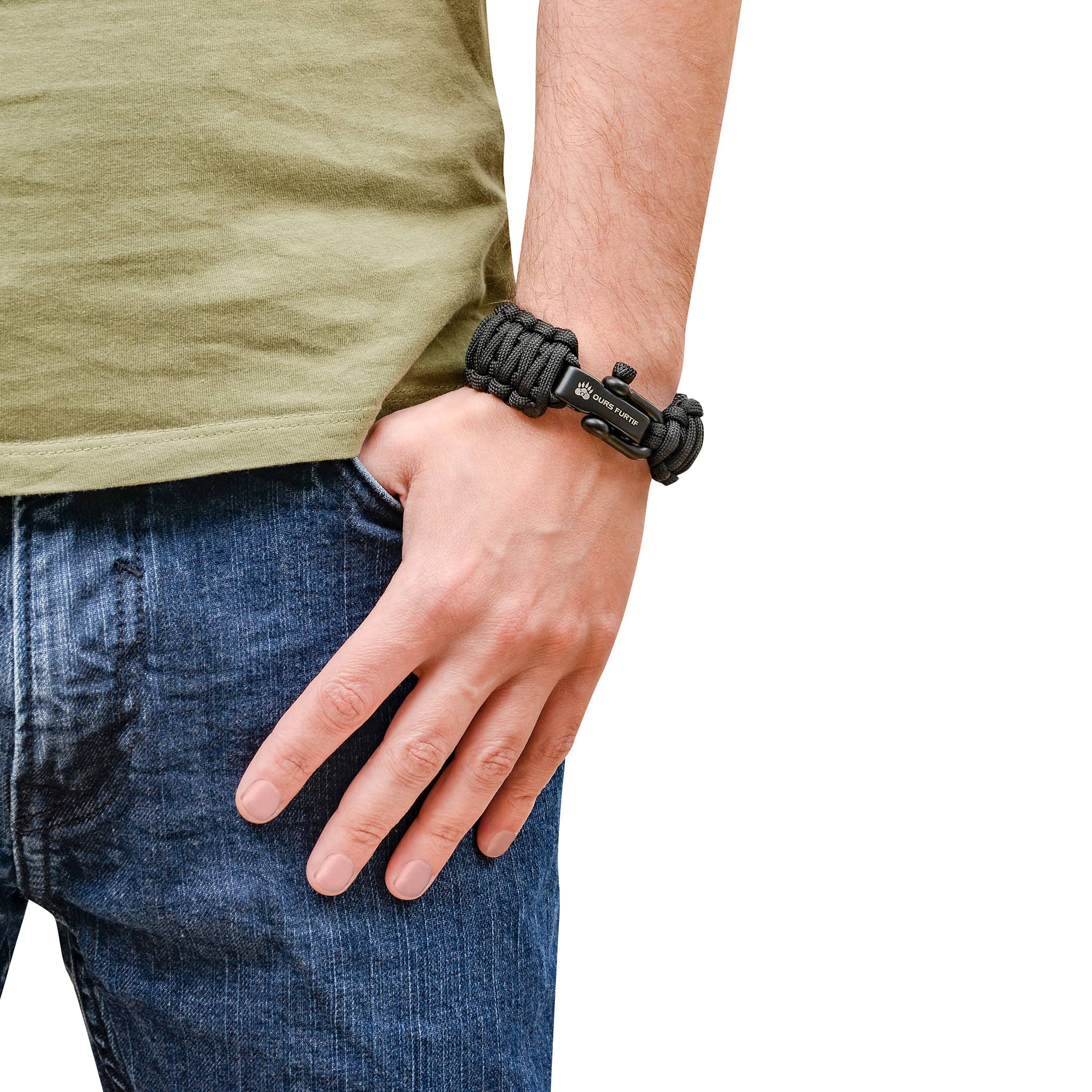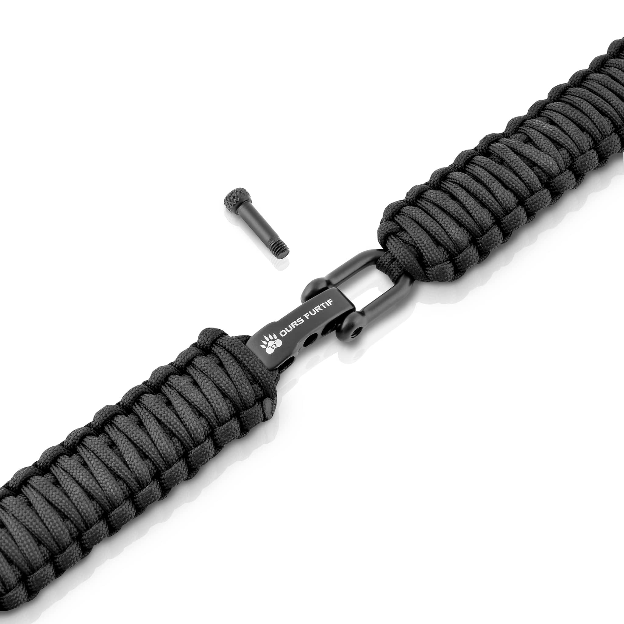 • Bracelet noir en paracorde (Corde nylon de parachute souple et résistant)