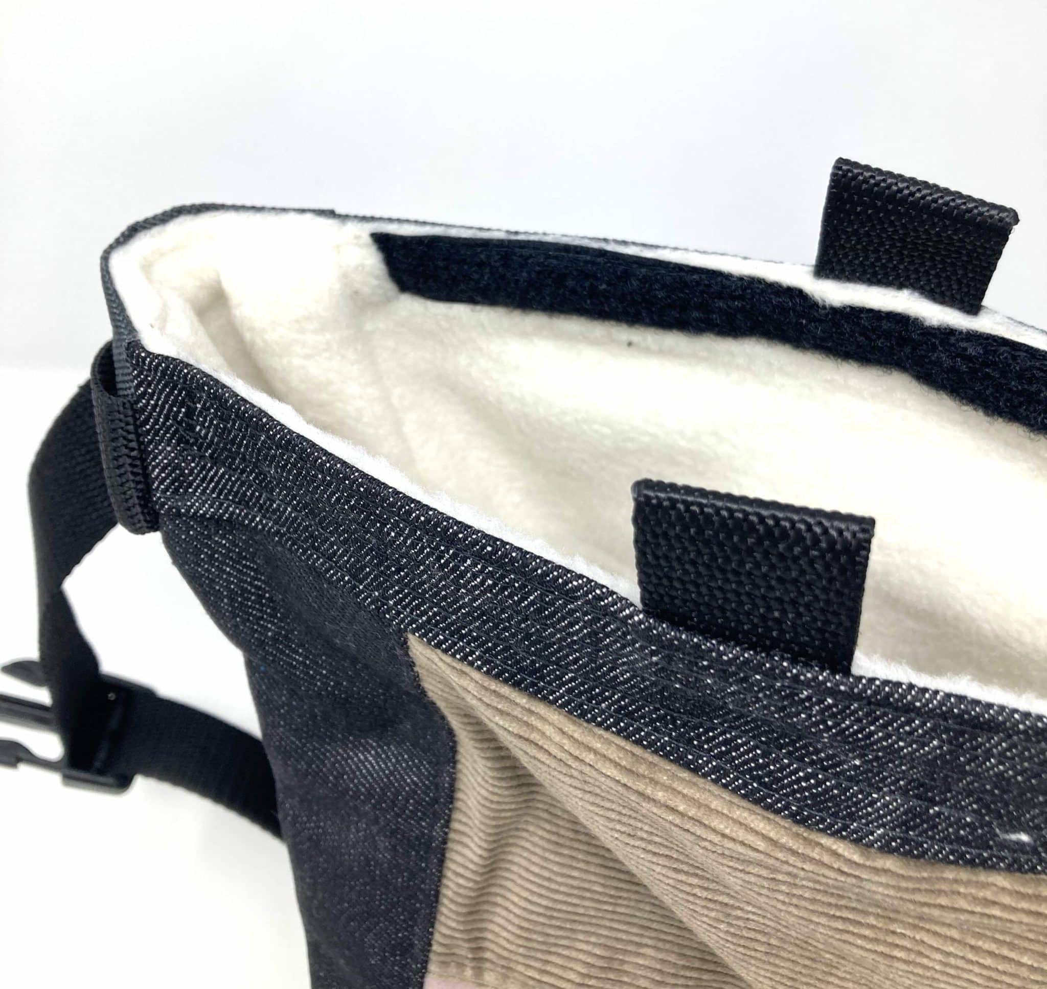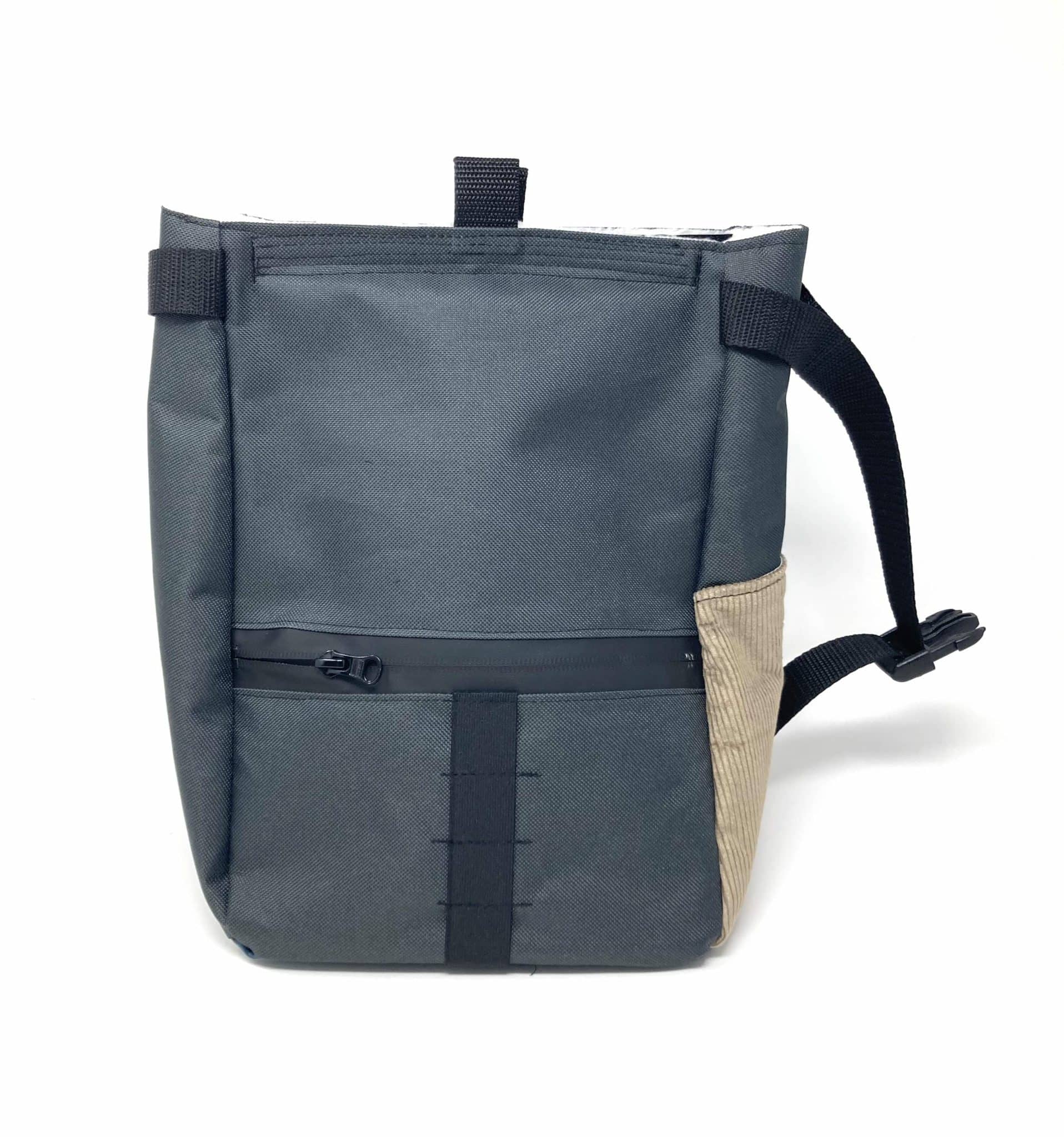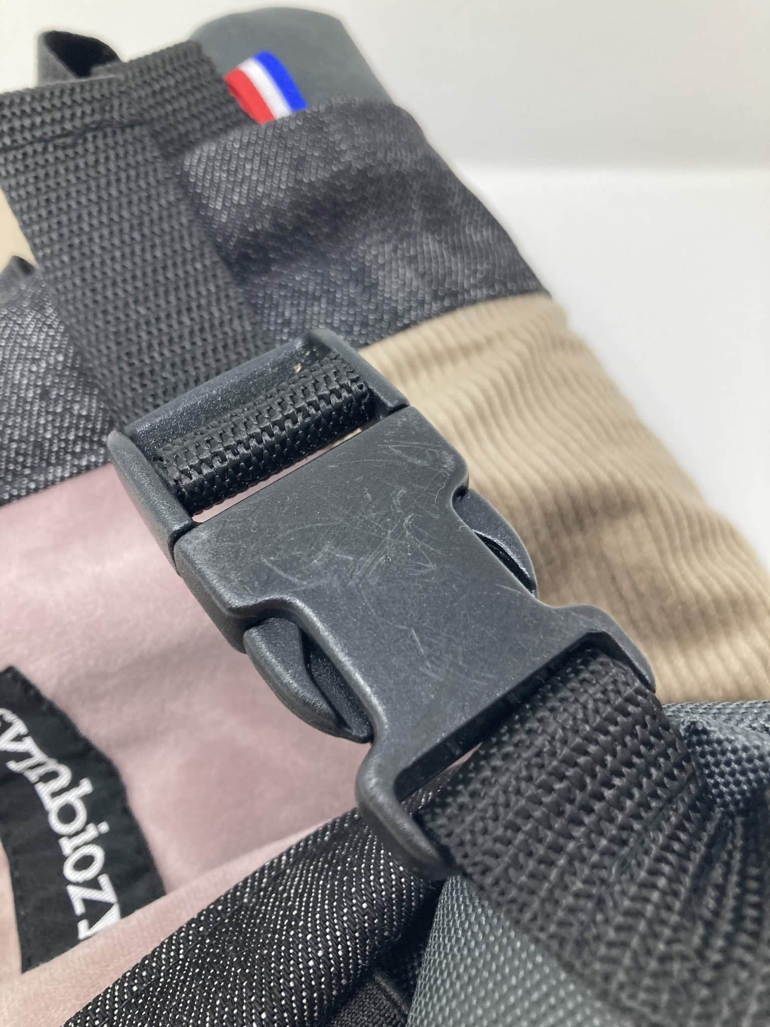 Ce sac à magnésie original a spécialement été conçus pour la pratique de bloc en extérieur ou en salle. Il est entièrement fabriqué à la main au Pays Basque, à partir de chutes de tissus d’ameublement et d’un pantalon. Ce sac à pof est 100% éco-responsable mais surtout unique! CET ARTICLE EST EN PROMO CAR LA BOUCLE ISSUE DE L’UPCYCLING PRESENTE QUELQUES GRIFFURES! La boucle est tout à fait fonctionnelle, ce n’est que de l’esthétique 😉