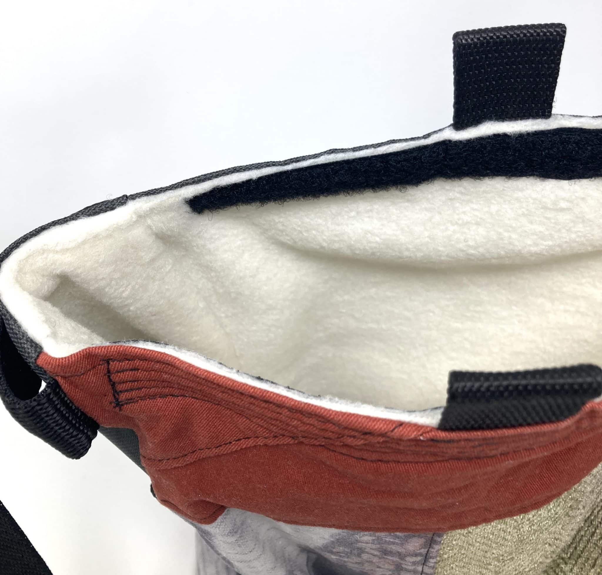 – doublure en polaire pour retenir la magnésie mais surtout parce que c’est agréable…