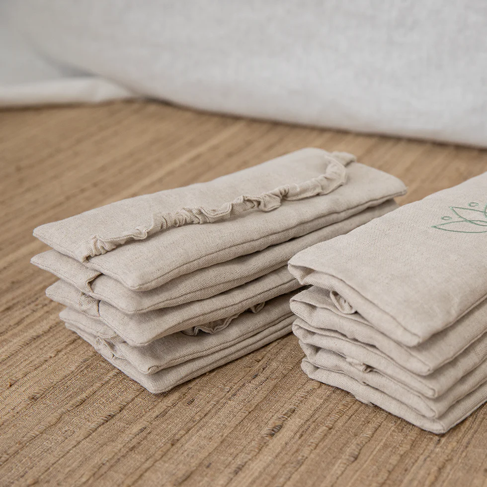 Nos coussins oculaires sont conçus pour exercer une pression douce et réconfortante sur les yeux, aidant à soulager les tensions accumulées et à favoriser un état de relaxation intense. Idéals pour les studios de yoga, les centres de bien-être, ou encore pour une utilisation après une séance de yoga prénatal ou de yoga du rire, ils sont parfaits pour instaurer une atmosphère apaisante et améliorer l’expérience de vos clients.