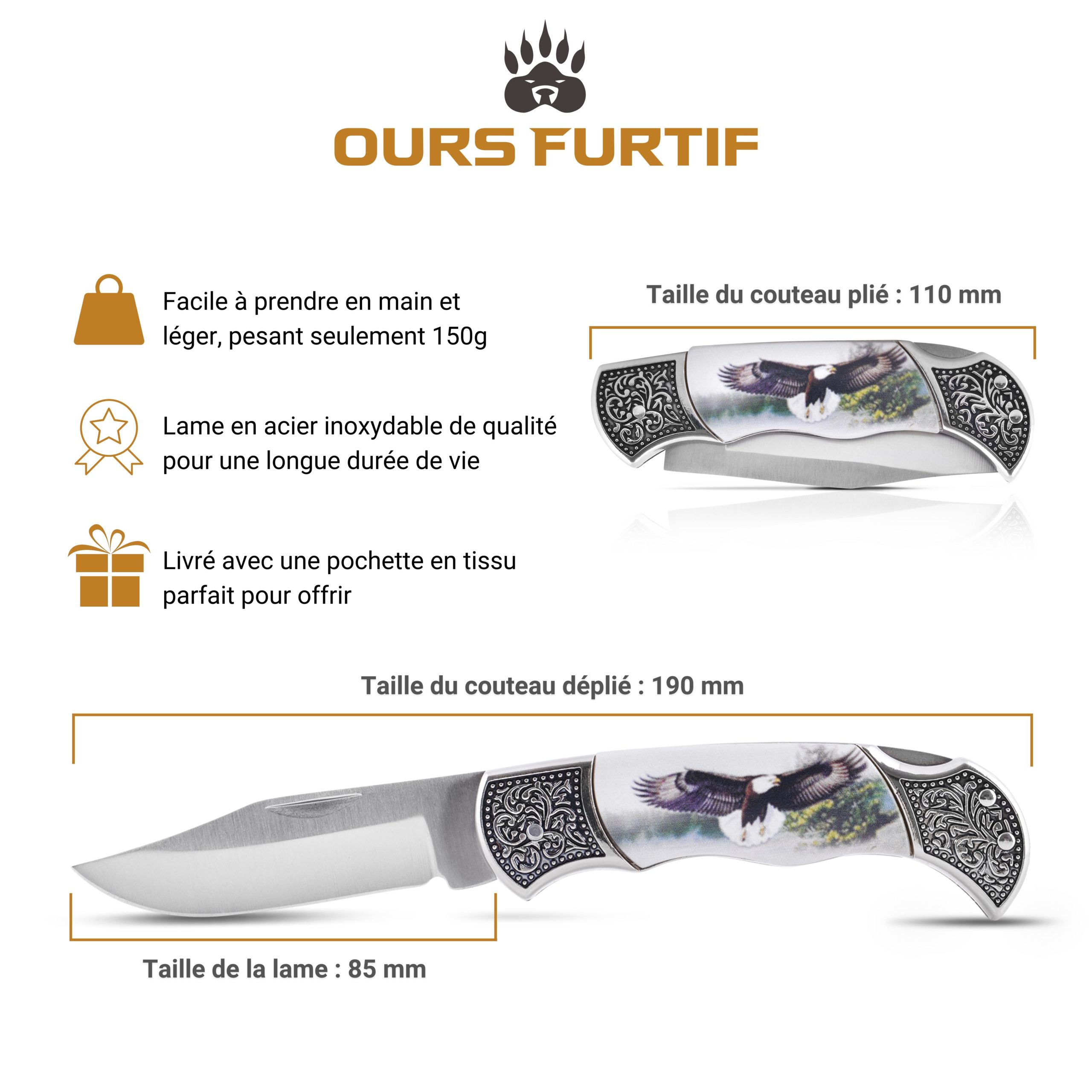 couteau pliant aigle avec pochette