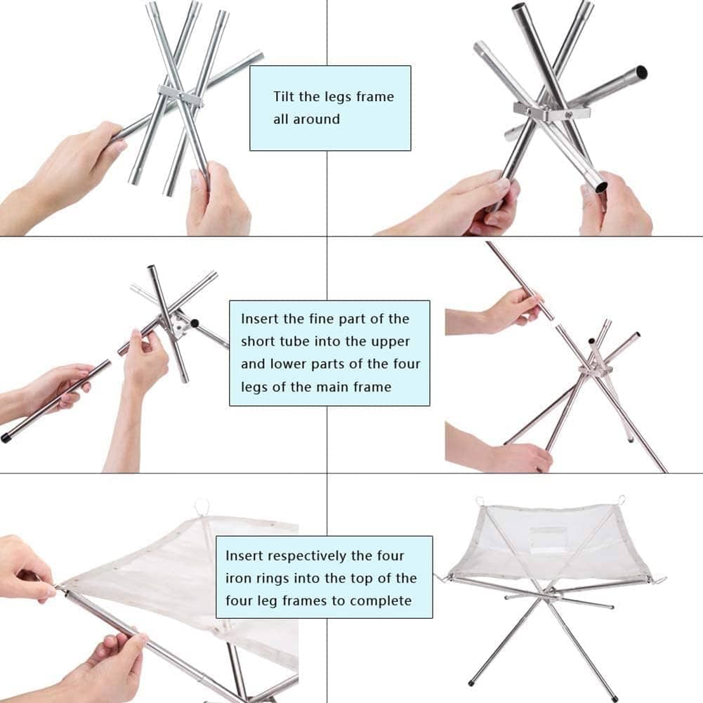 - Assemblage instantané sans outil : Aucun outil n’est requis pour l’installation. Il suffit de fixer les tubes en acier au cadre pour obtenir un foyer stable.