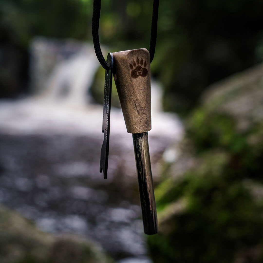 Le petit plus de notre pierre à feu naturelle, c’est son manche en bois le rendant plus authentique et plus respectueux de l’environnement par rapports aux firesteel avec des manches en plastique. Le logo Ours Furtif gravé sur celui-ci fait de lui un parfait compagnons ou cadeau pour un ami !