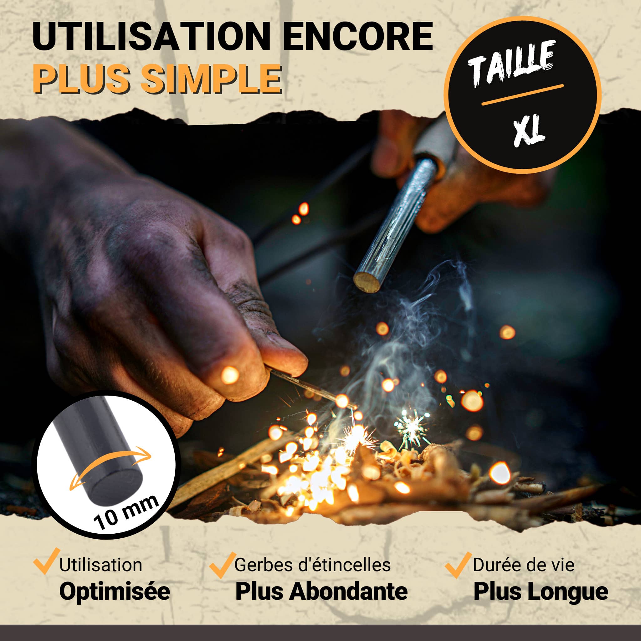 Survie et Bushcraft : En situation de survie, la capacité d’allumer un feu peut être cruciale. Notre pierre à feu est conçue pour fonctionner dans toutes les conditions.