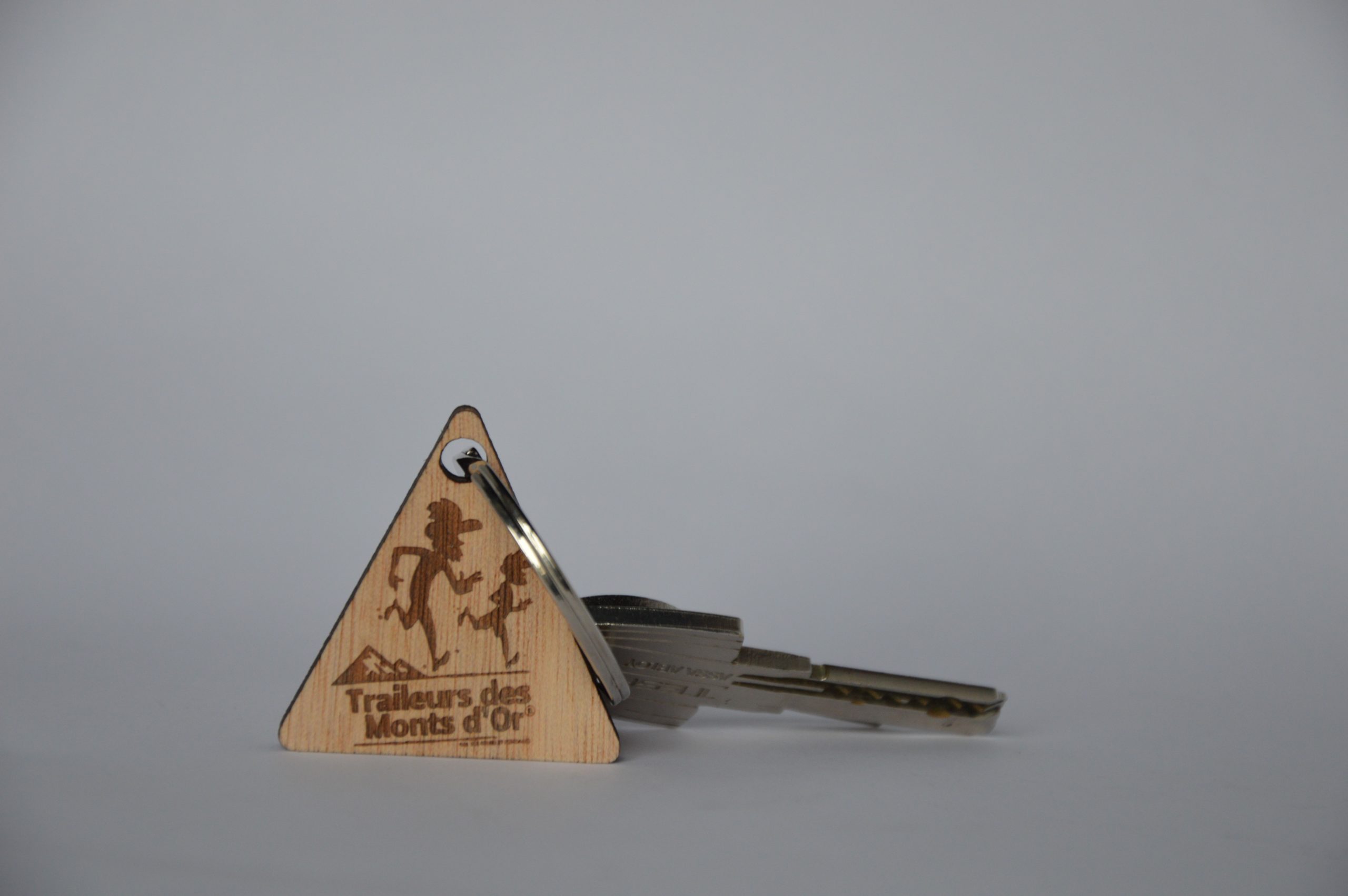 Porte clés gravé sur bois selon le logo ou textes de votre choix.