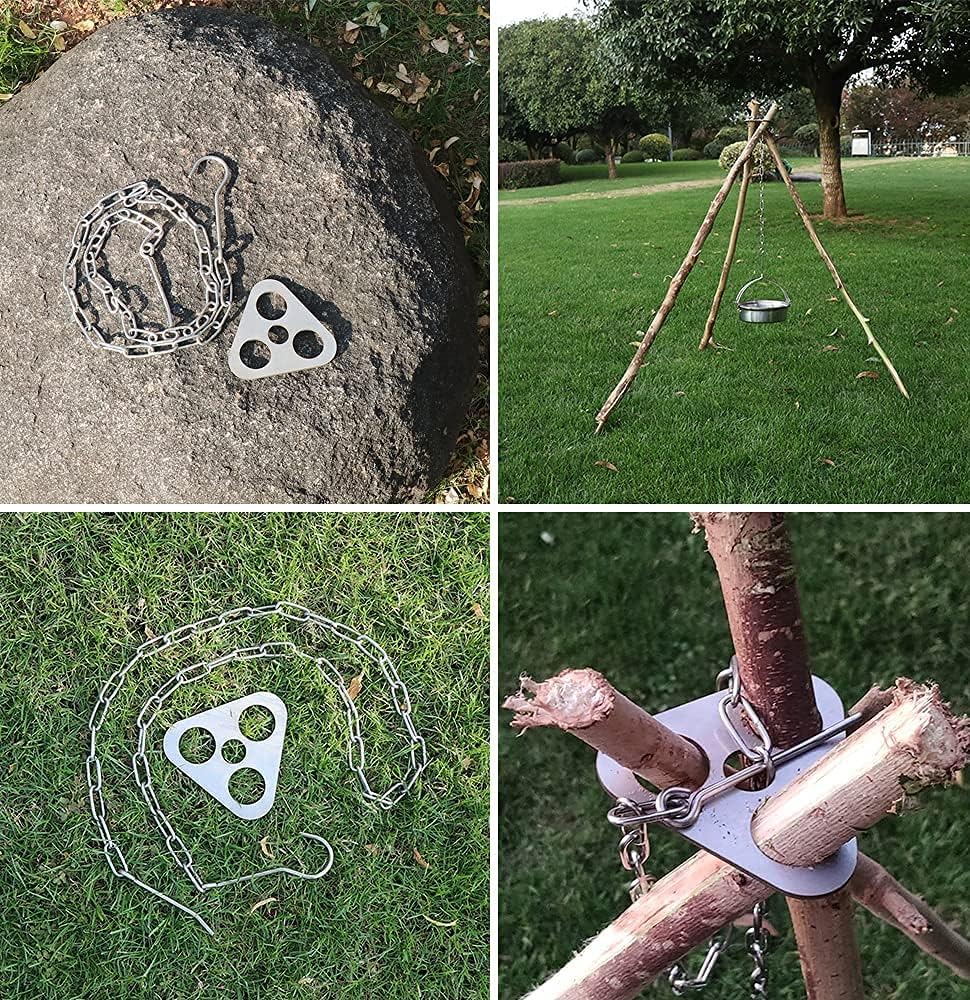 Le trépied en acier inoxydable est un accessoire essentiel pour tous les passionnés de plein air. Sa conception simple et efficace vous permet d’utiliser des bâtons de bois pour créer un support stable et robuste pour la cuisson au feu de camp. Que vous soyez en camping, en randonnée ou lors d’un pique-nique, ce trépied vous aide à préparer vos repas de manière pratique.