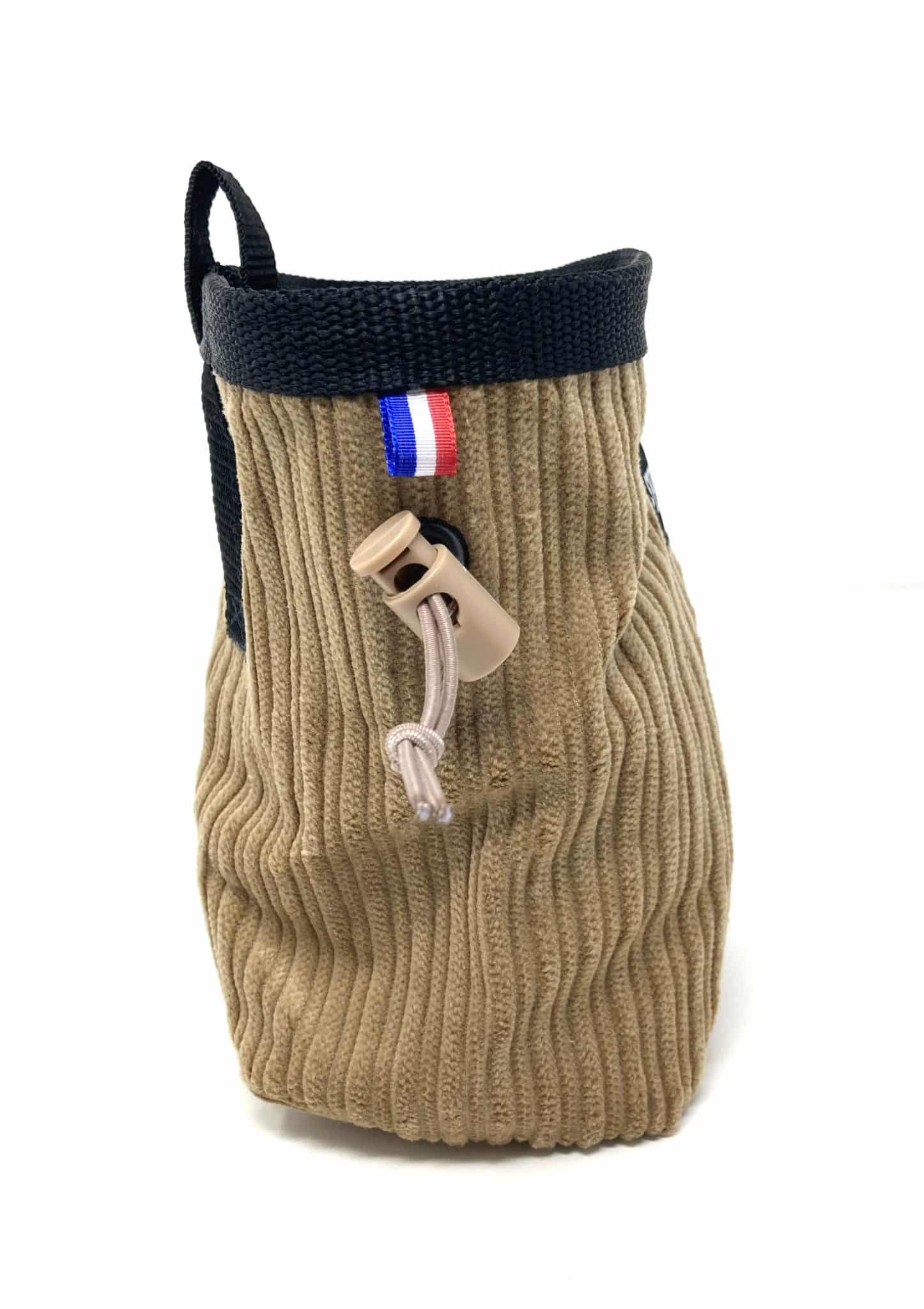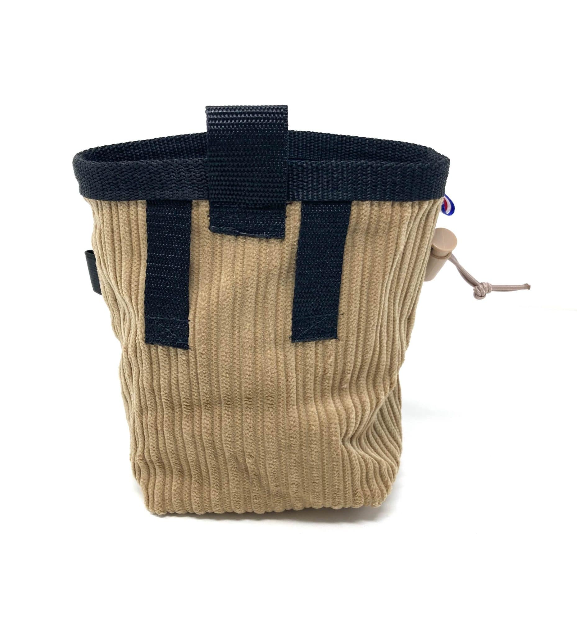 Ce sac à pof original est facile et pratique à utiliser. Il possède 2 systèmes d’attache, un élastique pour y mettre une brosse, bref, l’essentiel pour un sac à magnésie technique!
