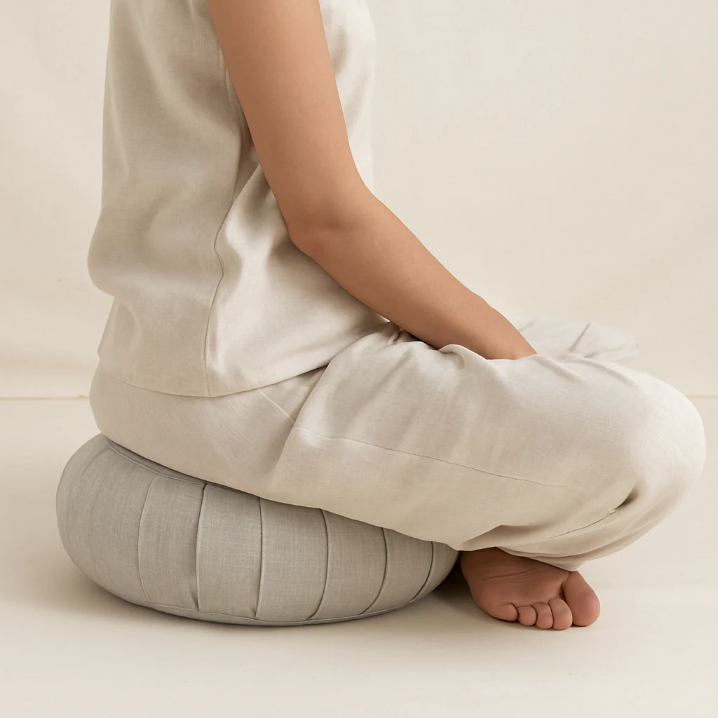 Ce coussin de méditation en lin garni de kapok végétal offre un soutien ferme mais confortable, idéal pour les longues séances de méditation, de pranayama ou les pratiques de yin yoga et de restorative yoga.